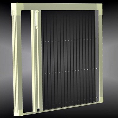 Принцип: Съемная конструкция в алюминиевой раме, крепится наружу с помощью специальных ручек-защелок или плунжеров.